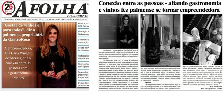 Para a nossa felicidade, a Confraria GastroRosé foi destaque na mídia e teve reconhecimento em edições de prestígio na cidade de Curitiba, além de já ter sido citada em outras ocasiões durante nossa trajetória e evolução.